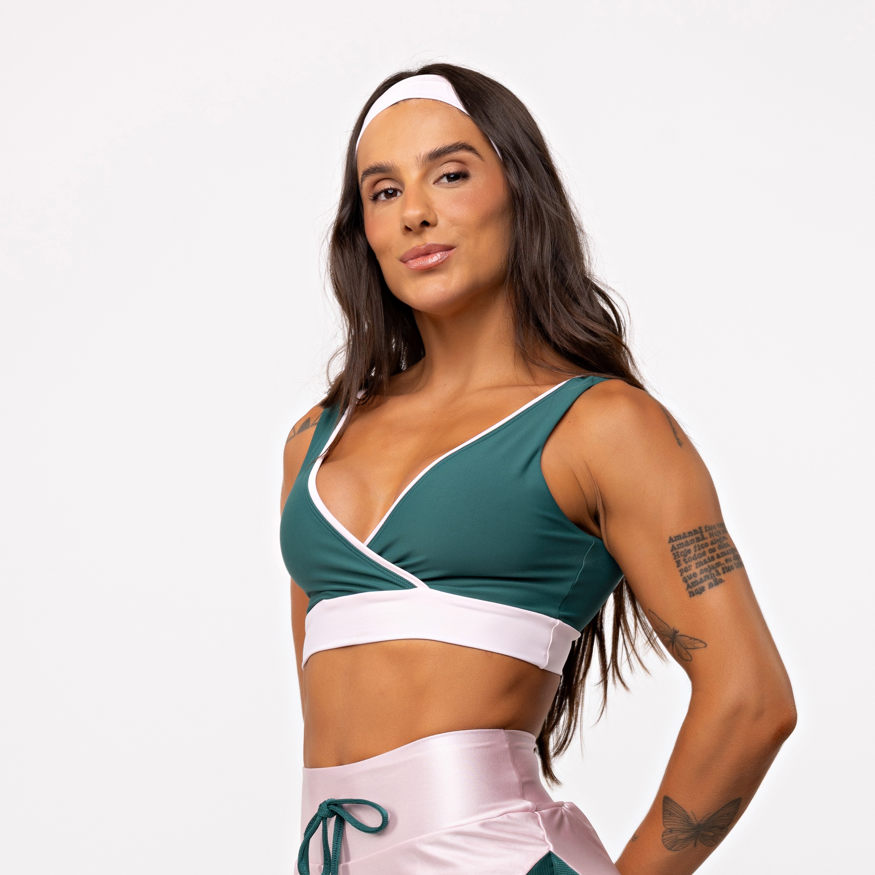 - Descrição do produto Top Cross Lines Bicolor - Esmeralda & Ballet