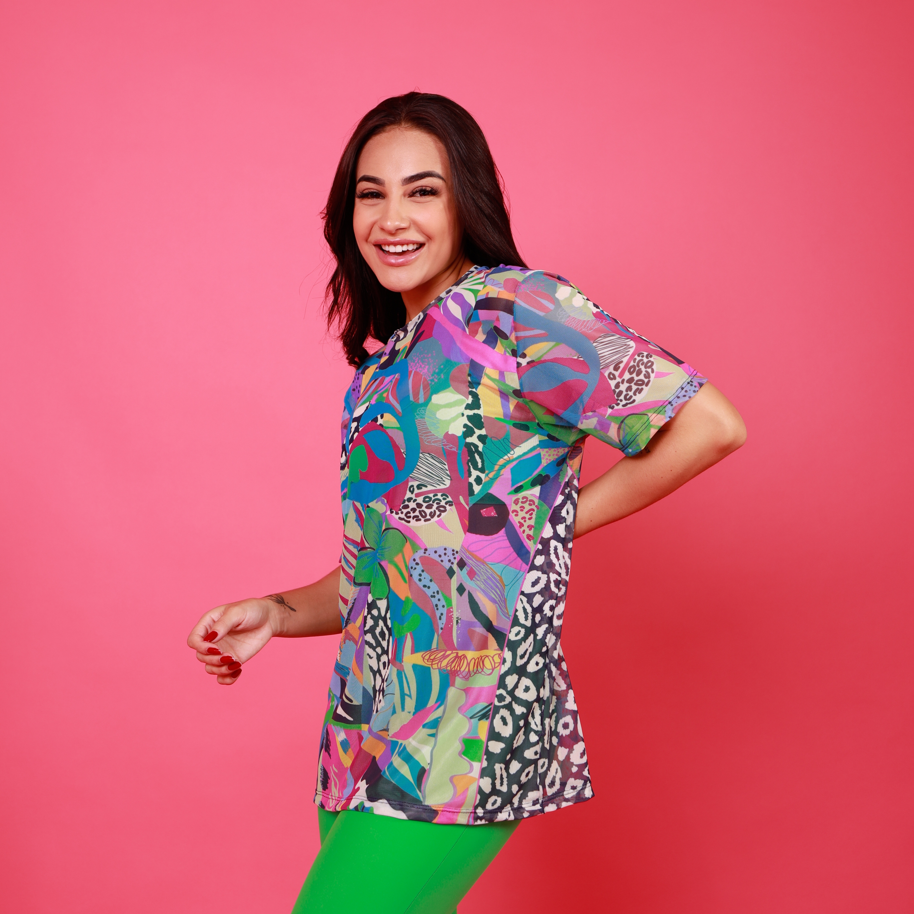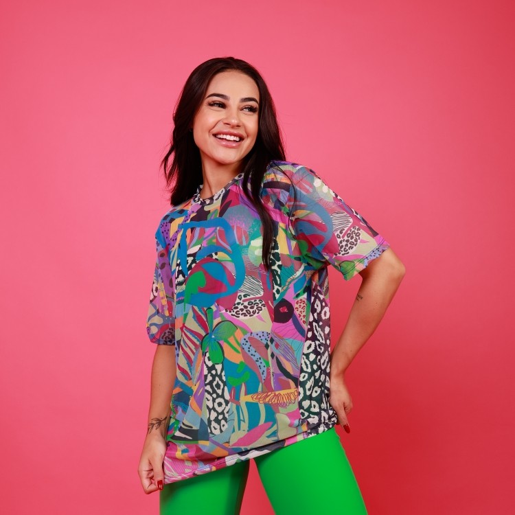 Feito em tule, meu Camisão Estampado Patch Tropic é supeeer leve e transpirável, ideal para te acompanhar nos treinos em dias muito quentes! Tem uma modelagem ampla e soltinha, pra quem ama conforto e mobilidade na hora de malhar, além da estampa incrível com araras localizada nas costas. É a terceira peça que não pode faltar, no seu lookinho!