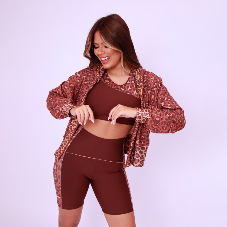 • Bermuda Cós Anatômico Lateral Estampada - Onça Chocolate