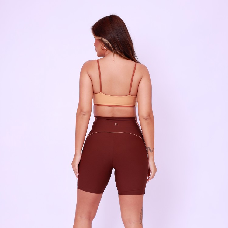A bermuda é confeccionada na cor café, feita de poliamida encorpada com alta compressão, garantindo conforto e suporte durante suas atividades.