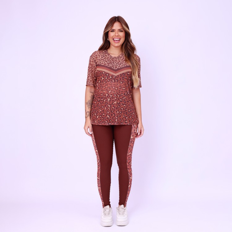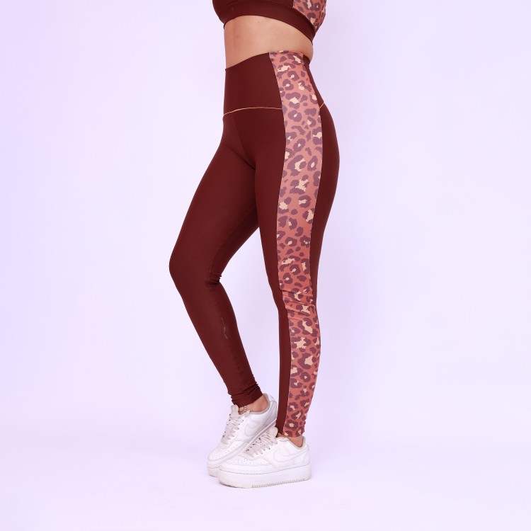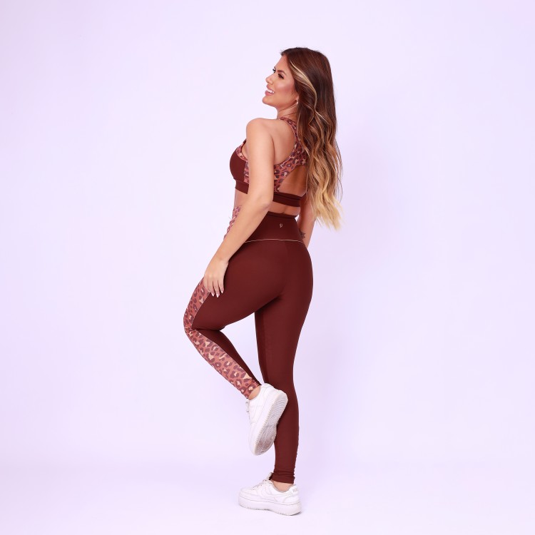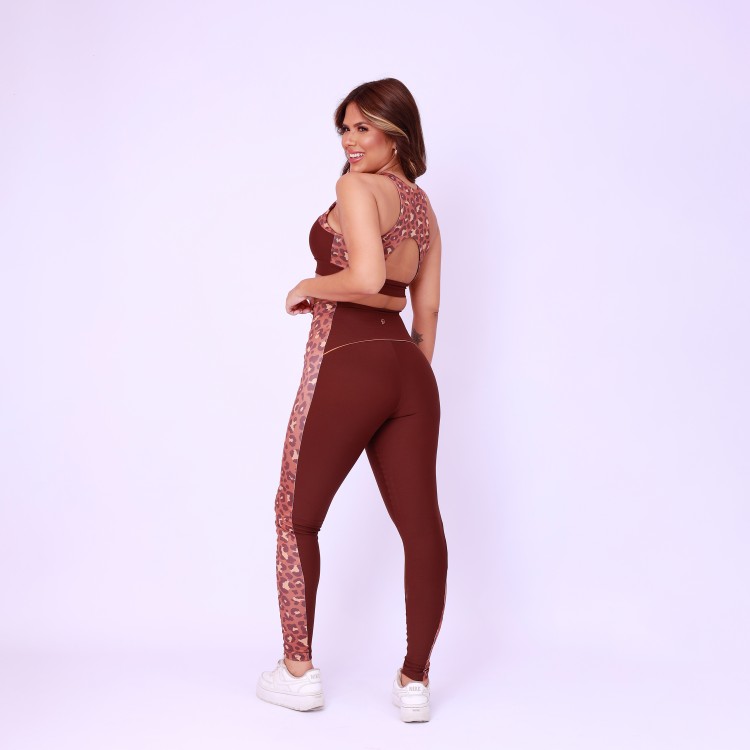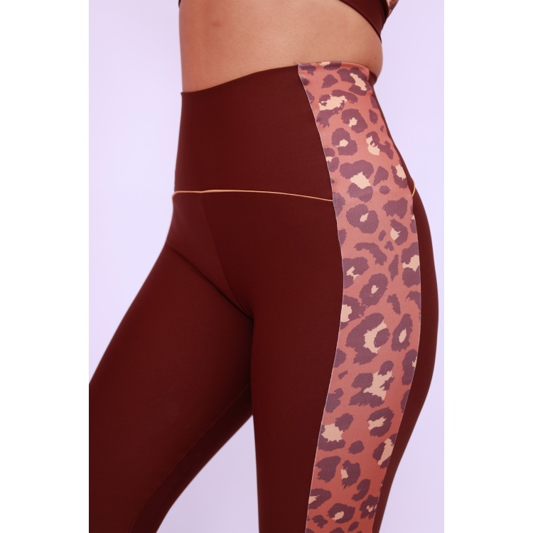 Legging Cós Anatômico Lateral Estampada - Onça Chocolate