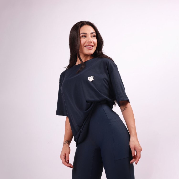 Feita em um tecido leve tipo malha, essa t-shirt é marinho e tem um toque macio que é uma delícia na pele.
