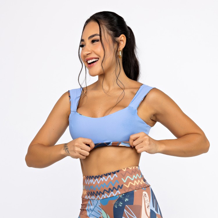 Um lado é estampado e o outro é liso na cor Azul Céu, perfeito pra quem curte versatilidade!