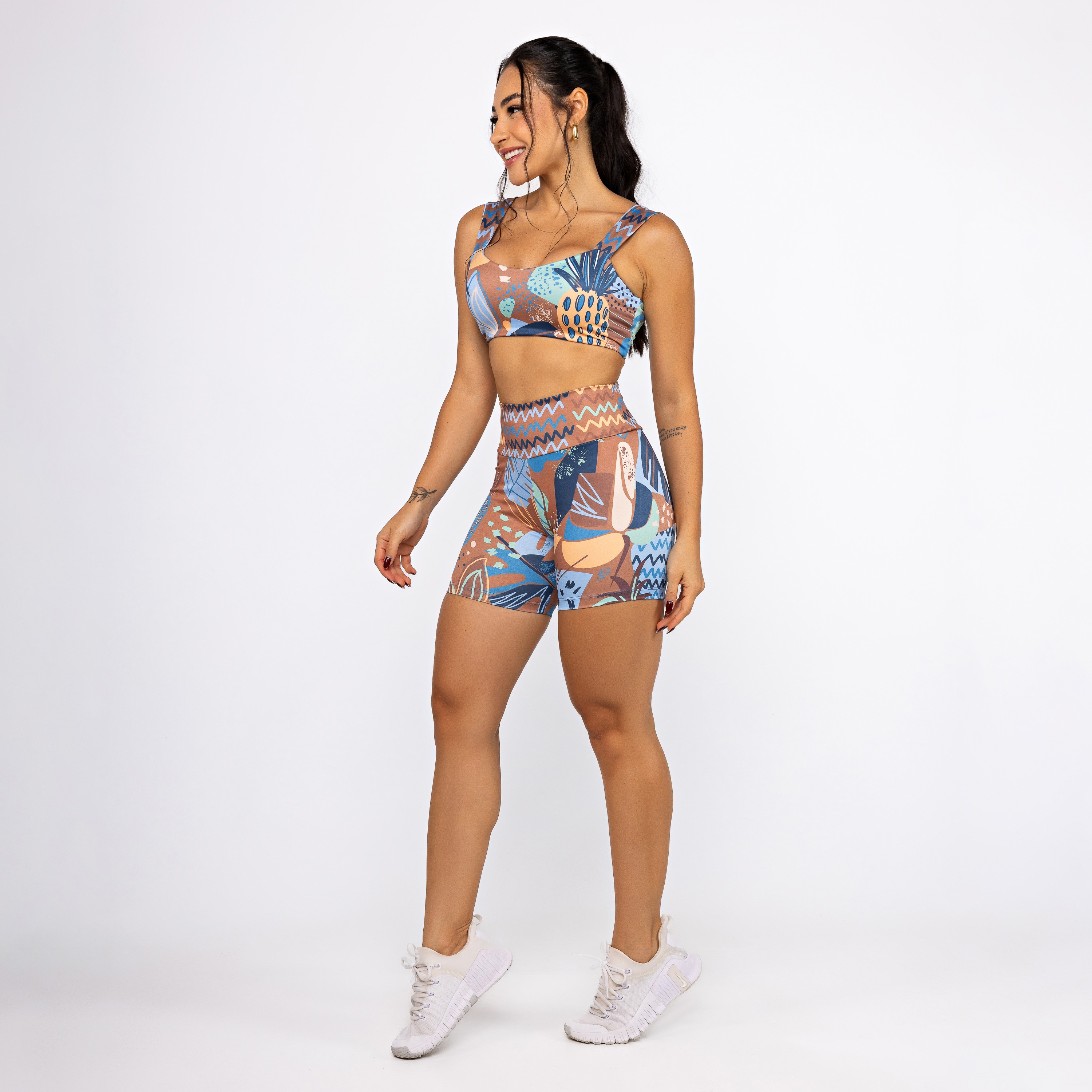 Totalmente estampado e maravilhoso, ele vem com um top dupla face pra quem ama se jogar nas estampas.