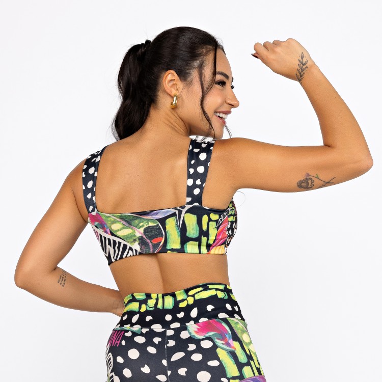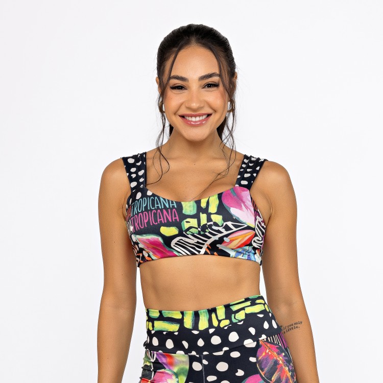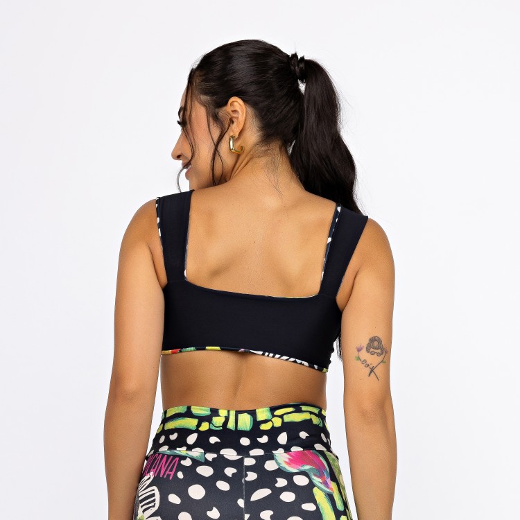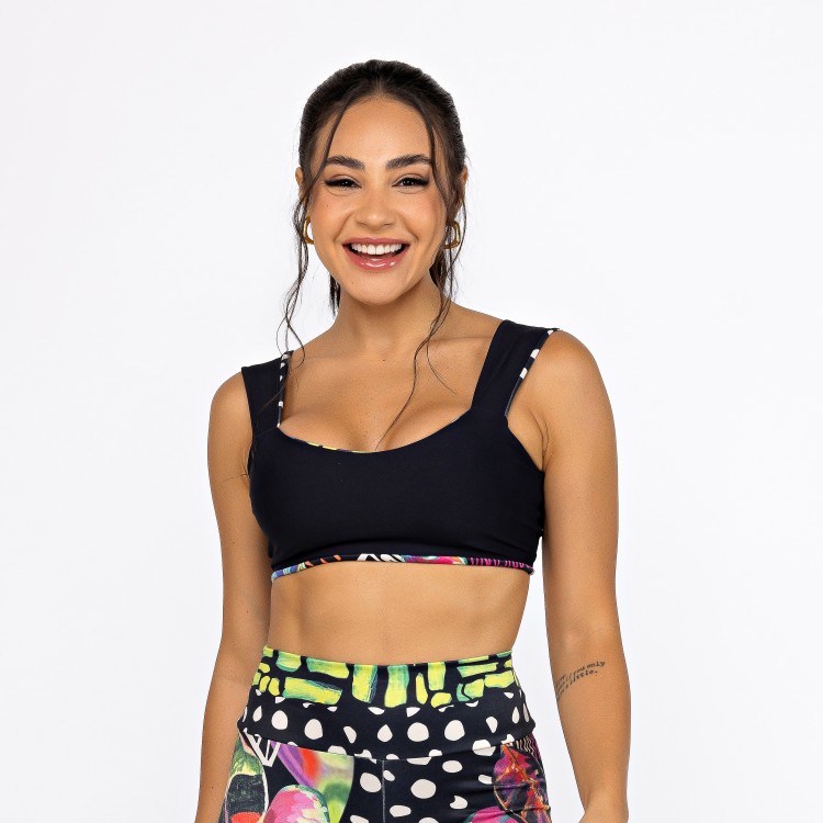 Totalmente estampado e maravilhoso, ele vem com um top dupla face pra quem ama se jogar nas estampas.