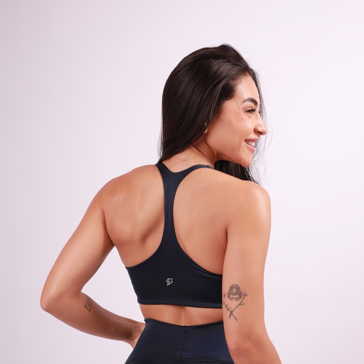 A costura trançada faz um contorno perfeito do busto, trazendo mais feminilidade e realce, enquanto o design de top nadador garante conforto e estilo.