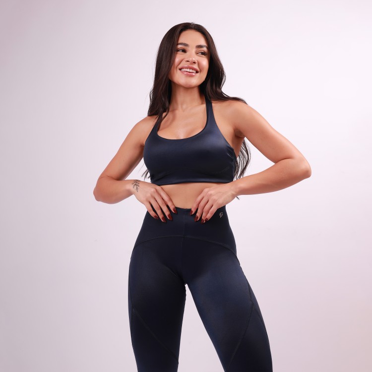 Com uma superfície acetinada e brilho perolado, esse tecido garante um ajuste incrível, proporcionando força de compressão que valoriza o corpo de forma excepcional.