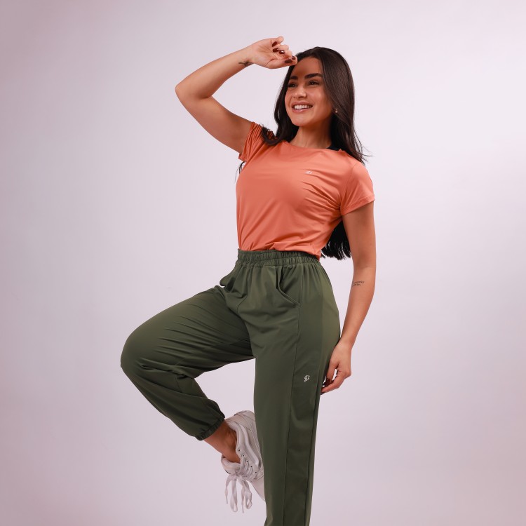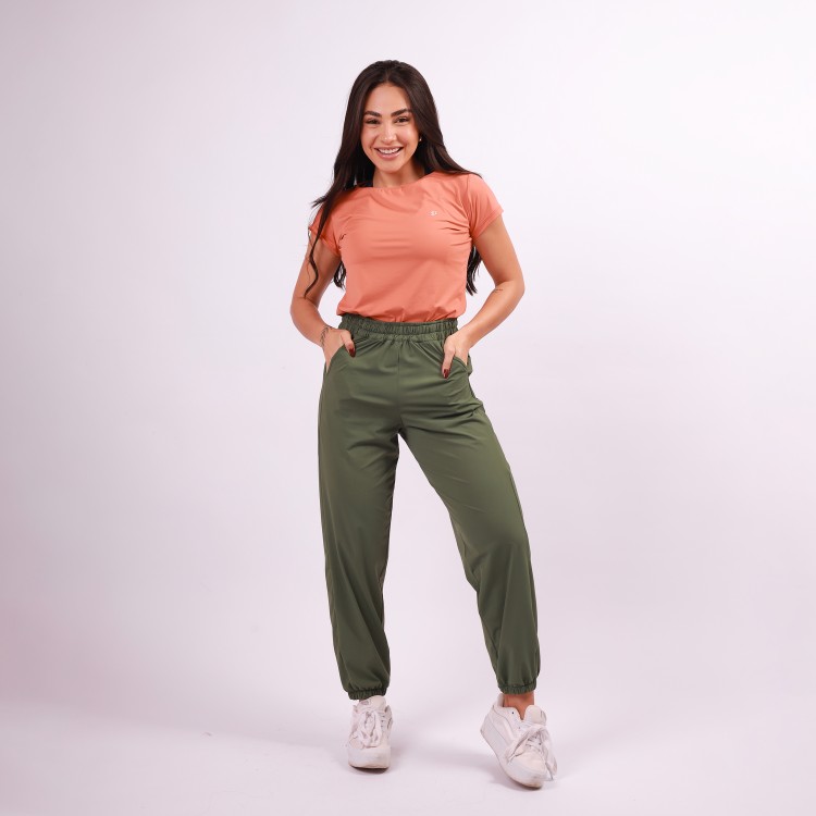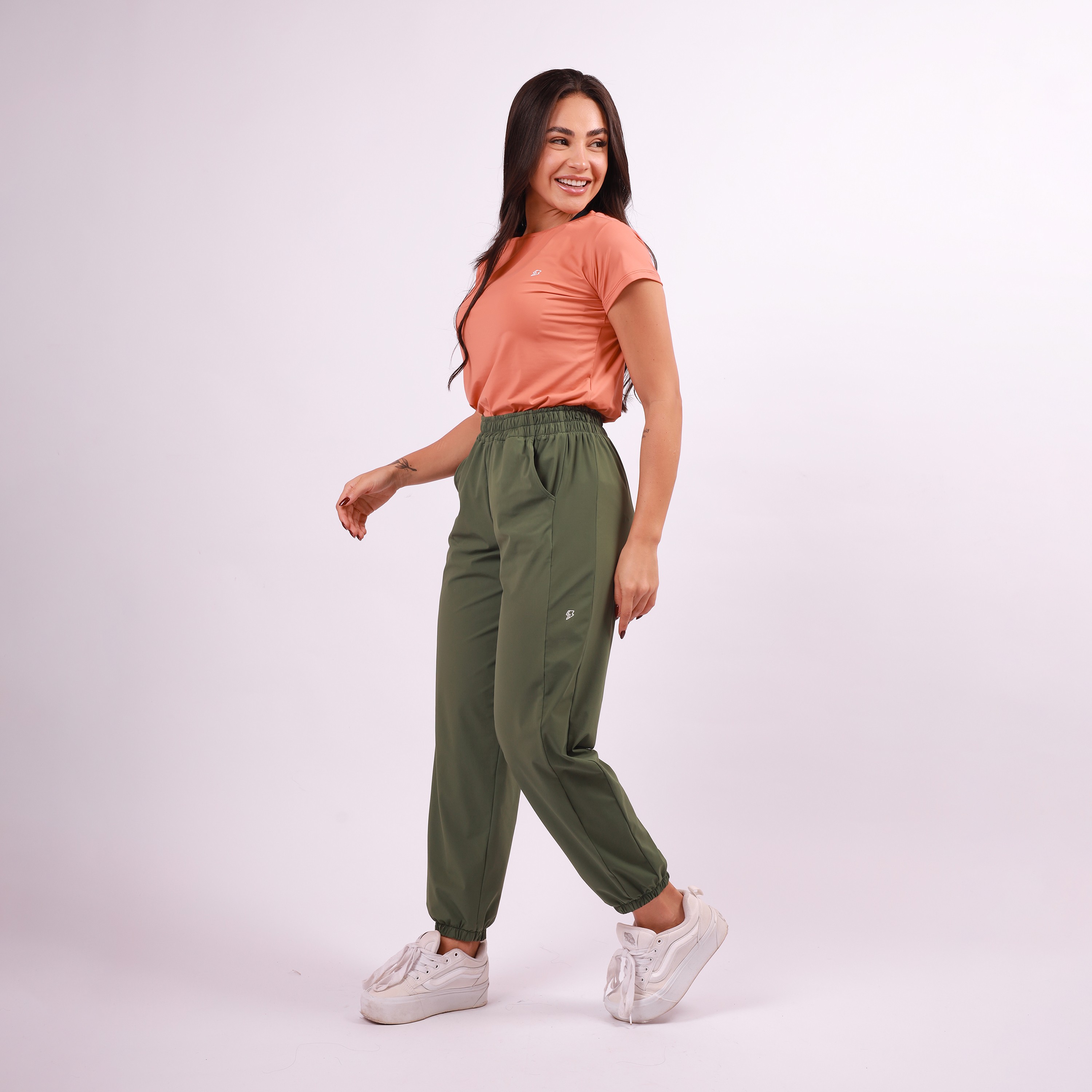 A Calça Jogger Bolso Tech Fit é super prática, com bolsos funcionais e um elástico na barra, permitindo que você use a calça presa na canela ou solta, conforme sua preferência.