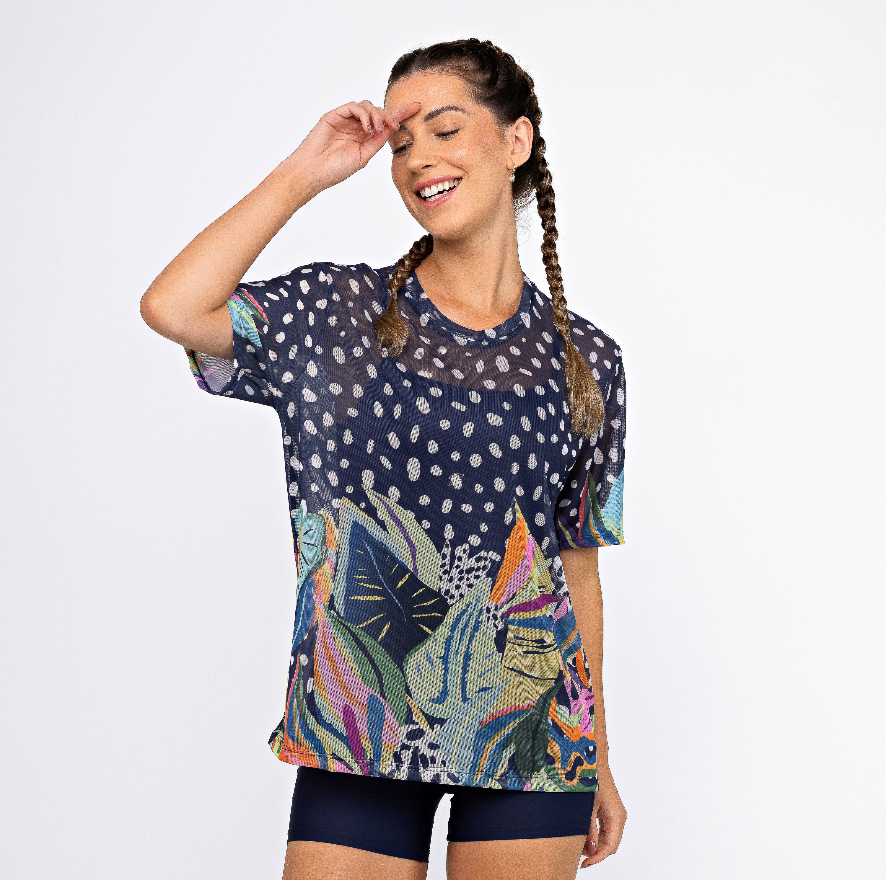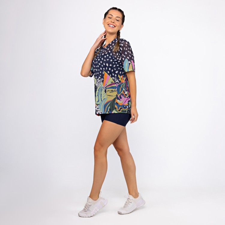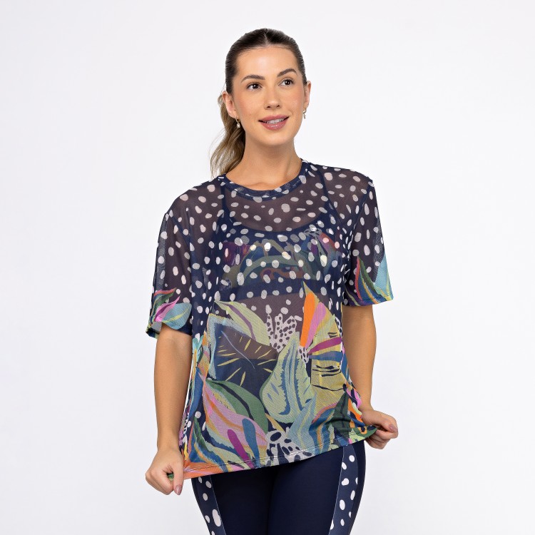 Camisão de Tule Estampado - Deep Ocean