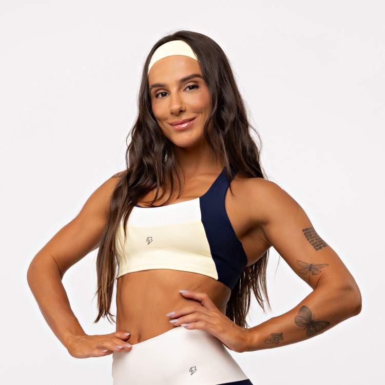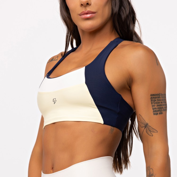 O Top Nadador Blocks Tricolor traz três cores na parte da frente, com recortes estratégicos que valorizam o busto e criam um visual moderno, forte e cheio de atitude. O decote frontal é lindo, na medida certa, e faz toda a diferença no look.