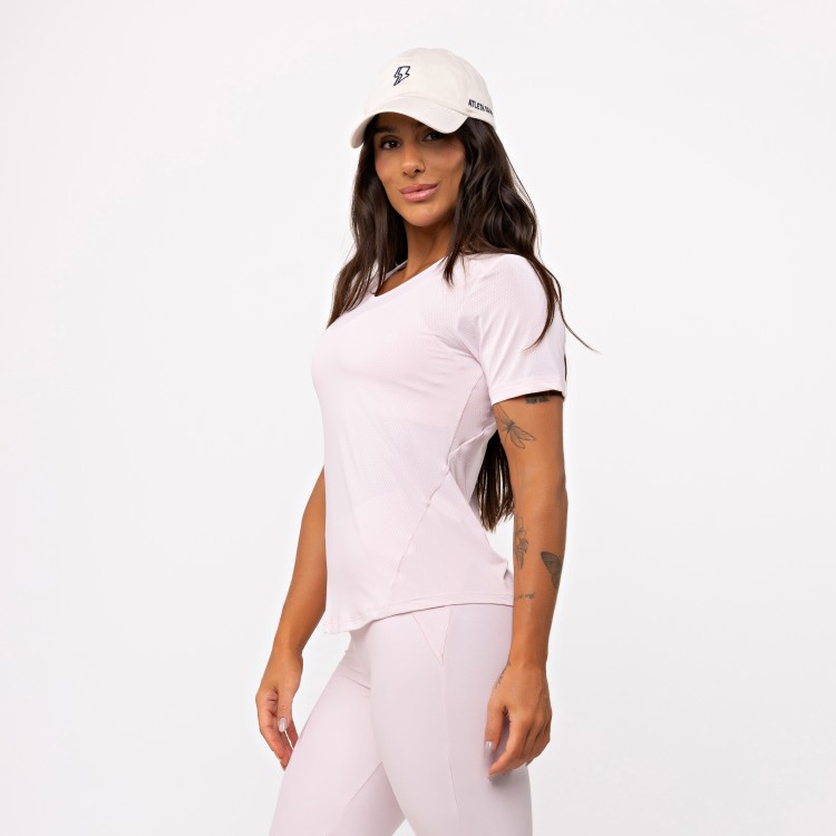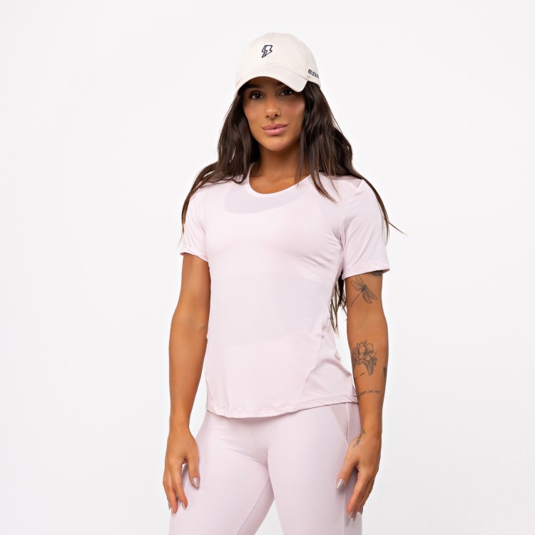 O tecido texturizado aparece como base da peça. Ele é leve, respirável e tem toque macio, garantindo um caimento solto e confortável no corpo. A elasticidade acompanha os movimentos sem pesar e deixa a blusa perfeita pro dia a dia.