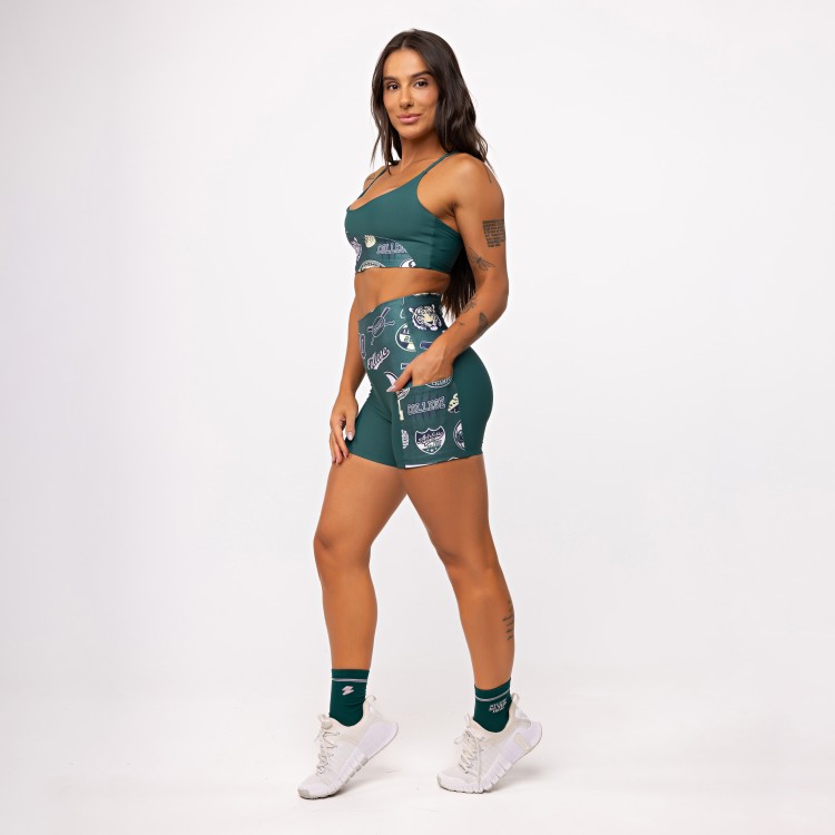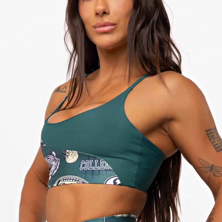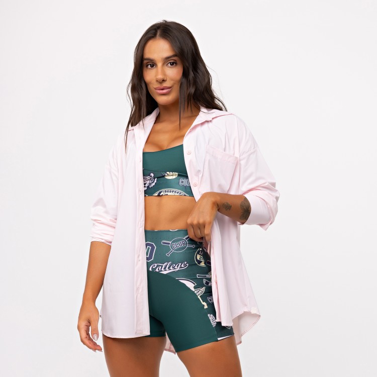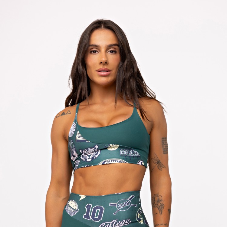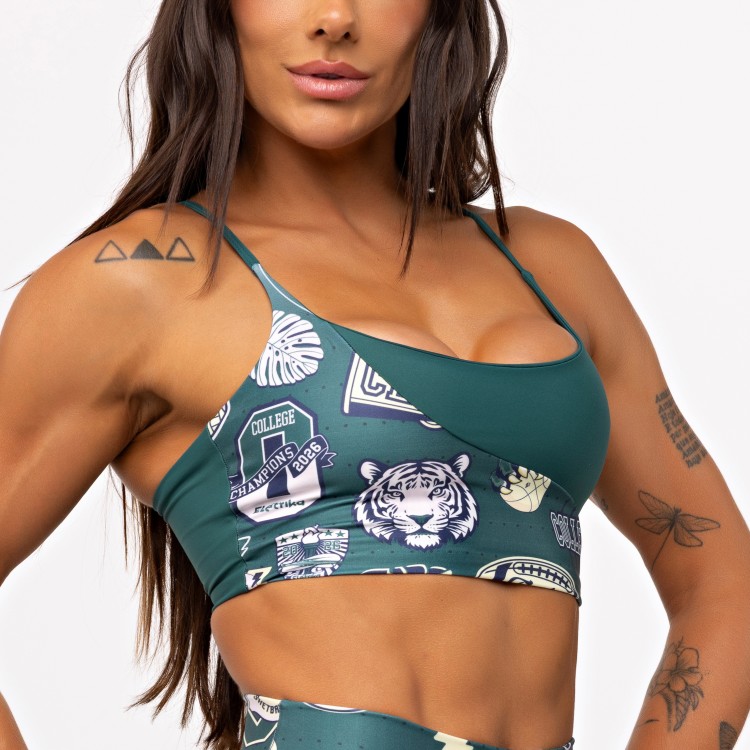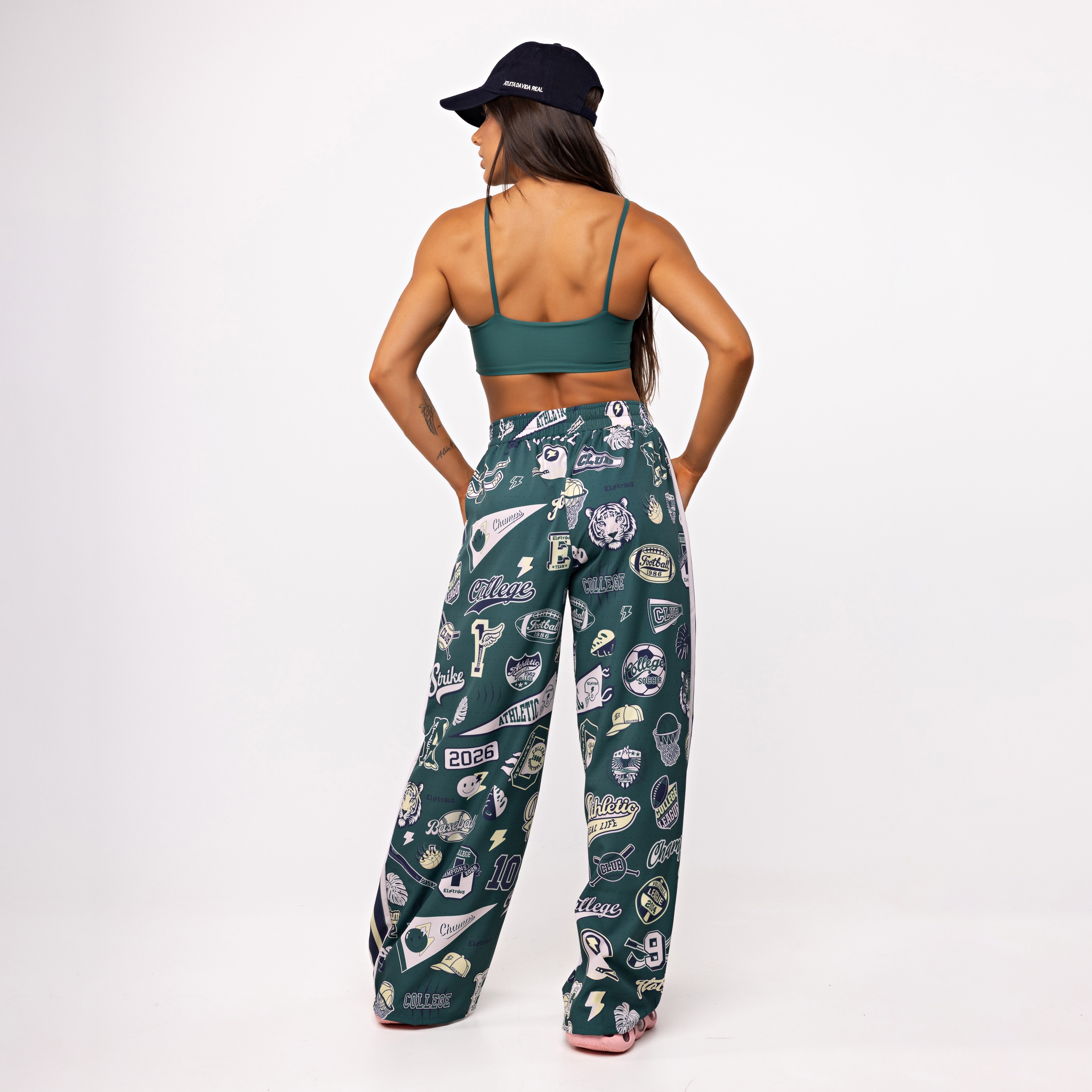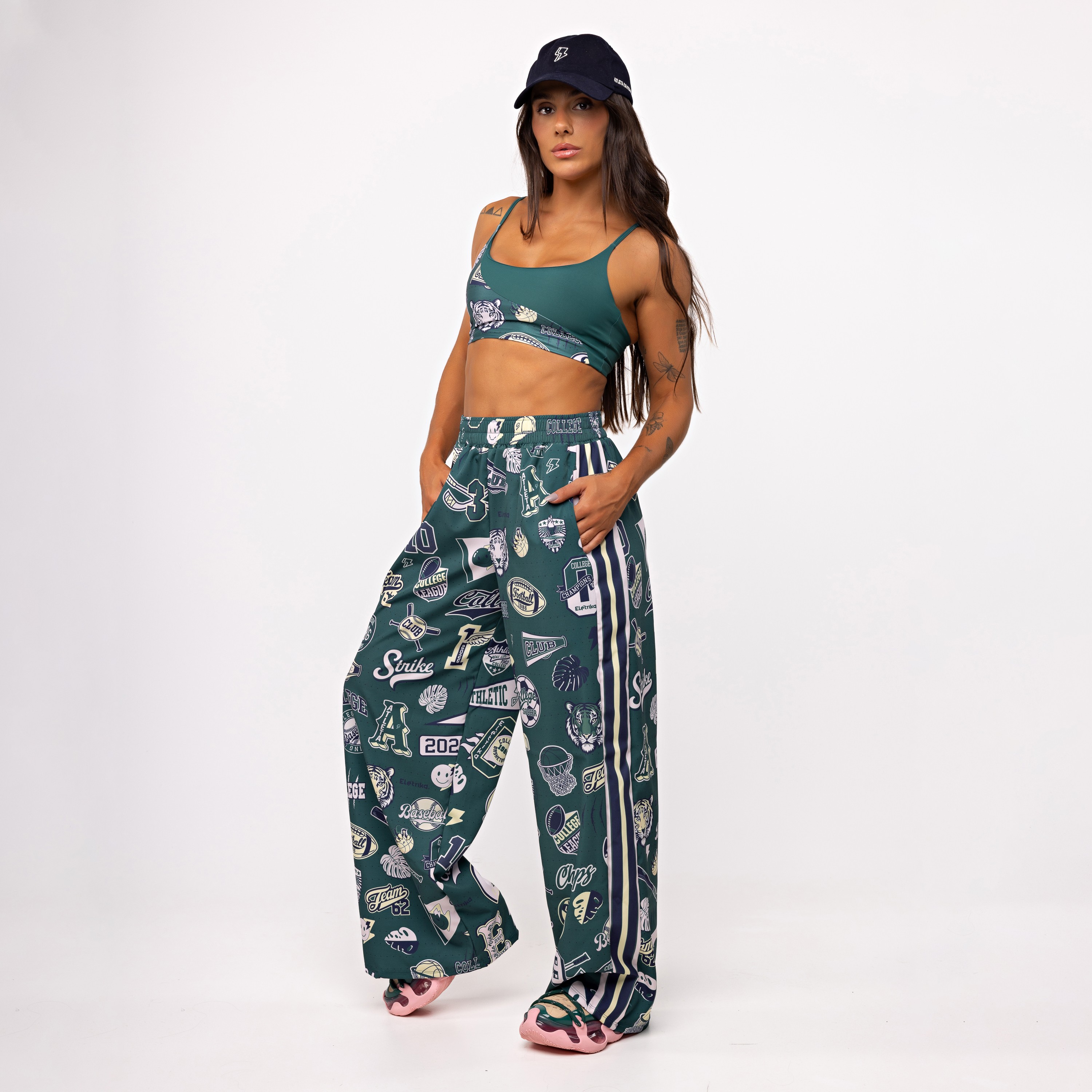 A estampa College, exclusiva da Elétrika, aparece valorizando o recorte e trazendo aquela vibe esportiva forte, urbana e cheia de personalidade.